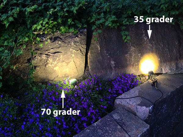 35 och 70 graders öppningsvinkel på ljusbilden.