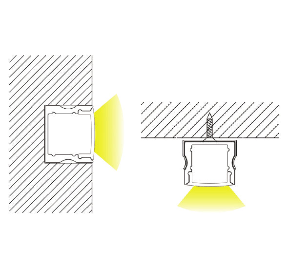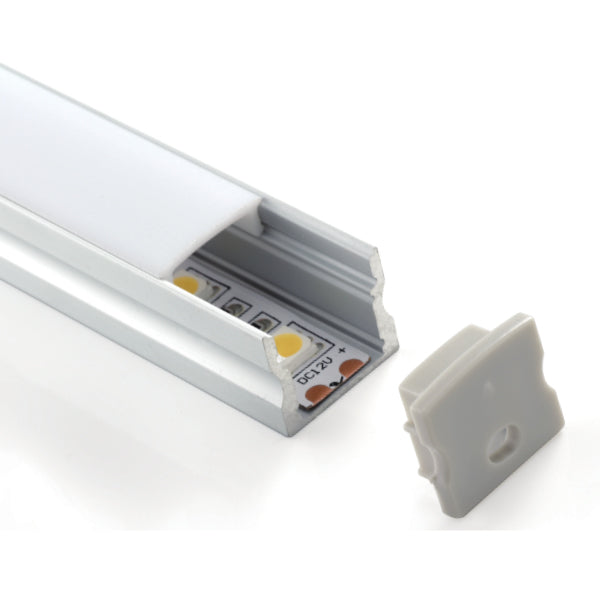 Aluminiumlist / Monteringslist för LED-Tejp med opal, diffus eller klar plastkåpa inklusive 2 st ändstycken och clips. Djup aluminiumprofil för utvändigt montering. Mycket lämplig LED-profil om man vill få lite avstånd mellan tejpen och frontglaset och på så sätt få ett bättre diffuserat ljus.