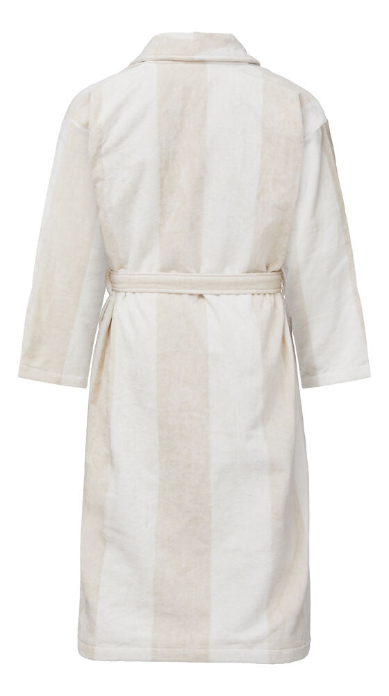 Lyxig morgonrock/badrock i unisex-modell med sofistikerade ränder, bred krage och välgjorda detaljer. Njut av mjuk och tjock bomullsvelour av högsta kvalitet. OEKO-TEX Standard 100 certifierad för produkter fria från skadliga ämnen.