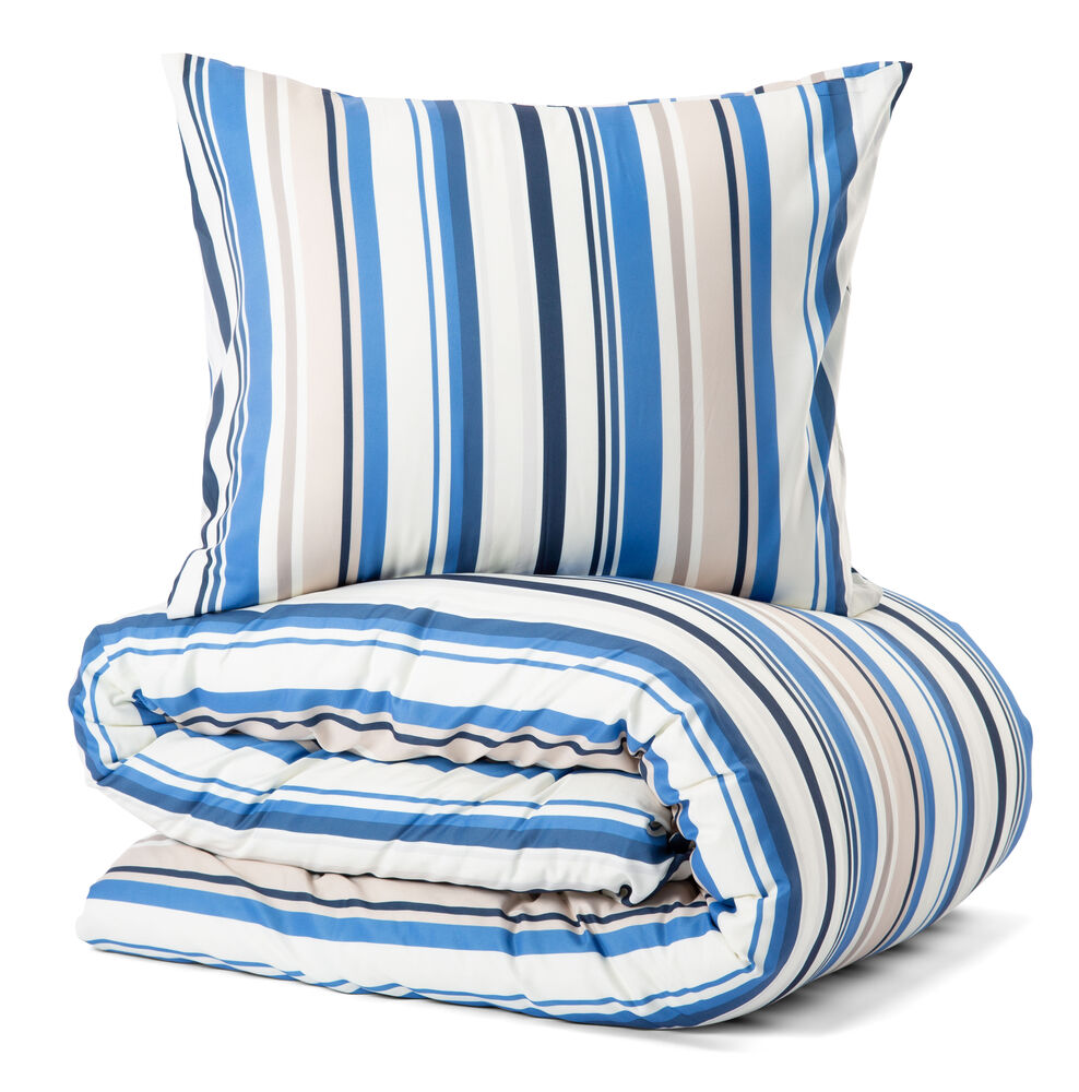Berga mikrofiberbäddset från Lord Nelson Victory med breda och smala ränder i en harmonisk kombination. Setet består av påslakan och örngott och är tillverkad av polyester med den positiva egenskapen att de torkar snabbt och väger lite. Bäddset i mikrofiber har blivit populärt att använda i både båt och husvagn på grund av att de är lätta att packa och klarar sig bra i fuktiga miljöer.