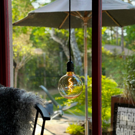 Penny är en vacker vädertålig pendellampa, perfekt för pergolan eller uteplatsen. Paketet innehåller en ljuskälla (vintage) och en textilkabel.
