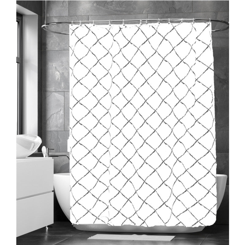 Duschdraperi Romb design Vit/grå 180×200 cm i textil 100% polyester, Maskintvättbar i 30 grader.