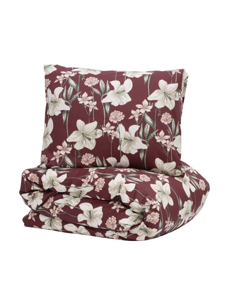 Detta bäddset kombinerar ett levande blommönser med en lyxigt len satinväv som smyger in en mjuk och inbjudande känsla i sovrummet. De milda färgtonererna och det harmoniska uttrycket gör det till ett självklart val för en ombonad och välkomnande säng.