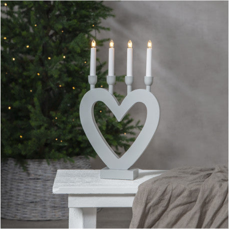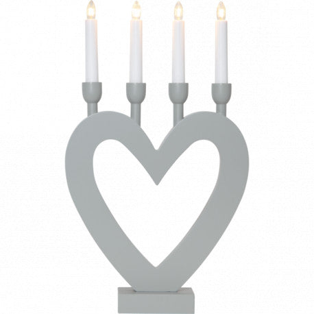 Grå träljusstake med formen av ett hjärta, 4 ljus.
