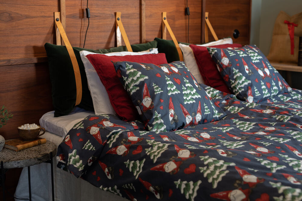 Ge sovrummet en julig känsla med detta mysiga bäddset med tomtar, granar och hjärtan. Ett bäddset från Lord Nelson i 100% bomull.