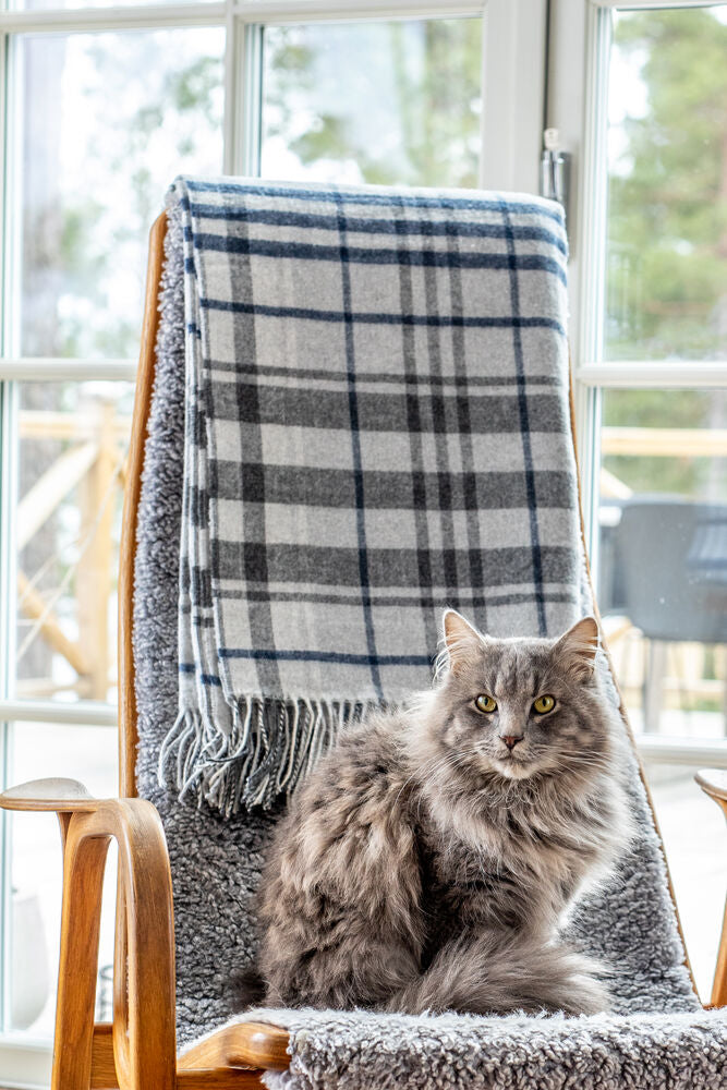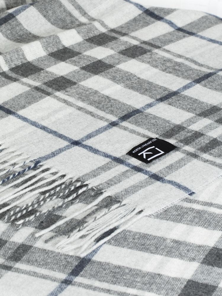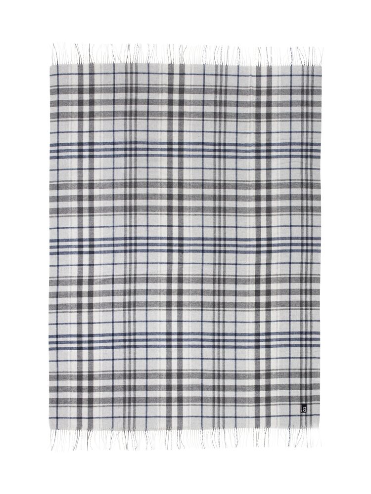 Mjuk pläd med blå/grå rutor på ljus botten som passar både som enskild inredningsdetalj och/eller att svepa om sig en ruggig kväll. Tillverkad i Ukraina.