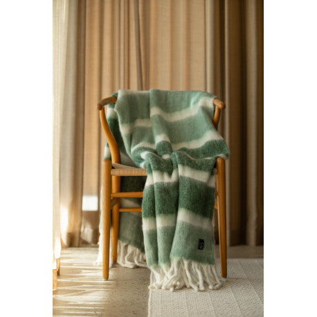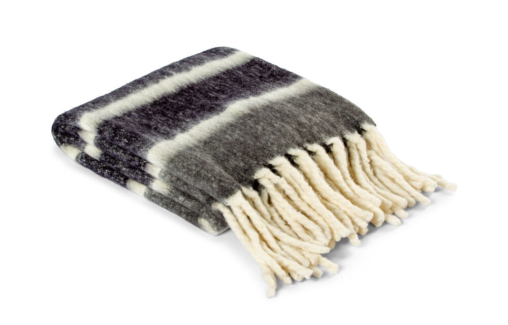 Denna randiga handvävda pläd är både mysig och stilren! Tillverkad av högkvalitativ ull och akryl, och med stora tjocka fransar för en extra touch av elegans. Perfekt för att krypa upp under en kall vinterkväll. Snygg att kombinera med 410776. Storlek: exkl fransar 130x170 cm
