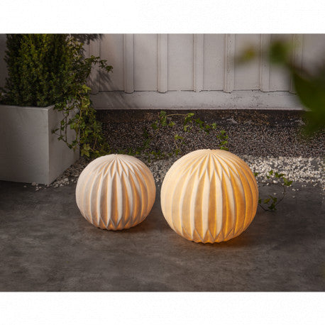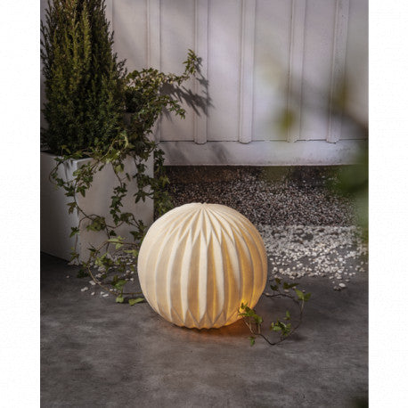 Sandy är en batteridekoration i form av ett klot gjort av sandstone, för både inom- och utomhusbruk. Finns i två storlekar. Den lyser med varmvitt sken och är fin att placera i din trädgård eller på en balkong.